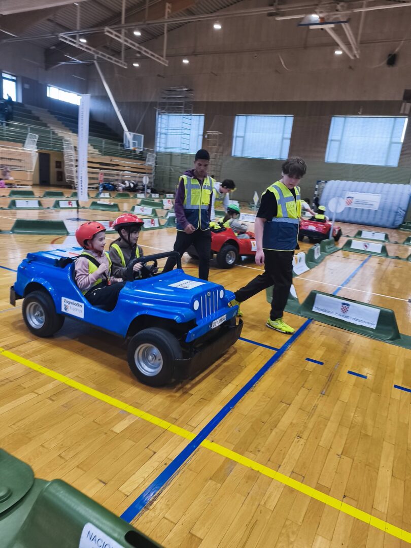 18.3.2026. drugi razredi u pratnji razrednica Ksenije Bilandžić, Romane Orlić, Marine Rodeš i knjižničarke Kristine Prilika sudjelovali su u programu Jumicar u školskoj sportskoj dvorani u OŠ Milke Trnine u Križu. Jumicar je edukacijski koncept za djecu nižeg osnovnoškolskog uzrasta koji obuhvaća teme prometa, prve pomoći, zaštite od požara i minsko-eksplozivnih sredstava. Program provode tvrtka Mini Auti i MUP-HR u suradnji s partnerima, HCK, HVZ te HCR. Cilj programa je razvijanje dječje svijesti o opasnostima koje proizlaze iz cestovnog prometa i svakodnevnog života.