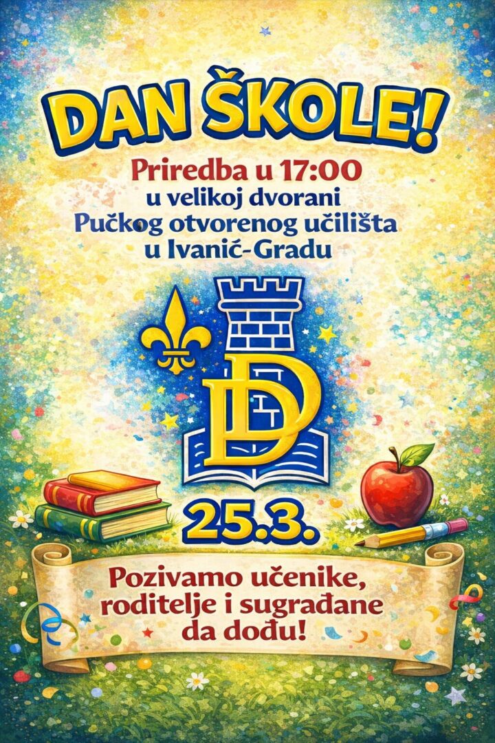 25.3. 2026. u srijedu obilježit ćemo Dan škole. Nastava će biti skraćena zbog održavanja svečane priredbe u 17 h u Velikoj dvorani POU Ivanić-Grad. Učenicima predmetne nastave nastava traje do 11:50, a bus učenicima putnicima polazi u 11:55. Za učenike razredne nastave polazak autobusa je u 12:10 sa stajališta Lonja, Tarno i Šarampov.